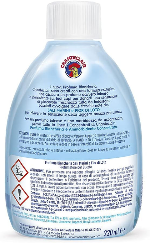 Il Profuma Biancheria della linea Chanteclair «I Concentrati» è creato con una formula esclusiva che assicura un profumo davvero intenso e persistente sui tuoi capi per donarti una sensazione di piacevole freschezza tutta da indossare.