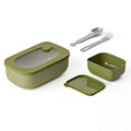 Il set è composto dalla lunch box Store&Go che ha all'interno due contenitori rettangolari, uno dentro l'altro, che possono contenere fino a 900 ml e che permettono di dividere diverse tipologie di cibo evitando la contaminazione dei sapori grazie alla presenza di un comodo coperchio.