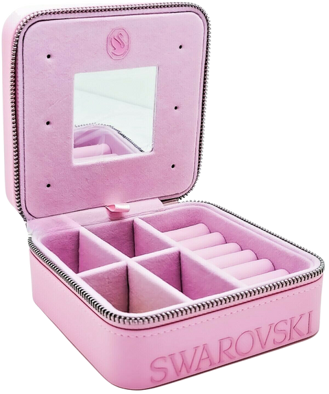Ha più scomparti per riporre i tuoi accessori preferiti ed è splendidamente rifinito con la scritta del marchio Swarovski griffrato sul davanti.